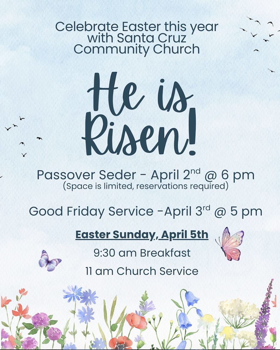 Whether you are established in your faith, or a brand new believer, or just curious about who Christ is or what church is like, you are welcome to come and worship with us. You will be greeted by a loving community of believers, and experience the joy and comfort of God’s presence. Our service consists of biblical teaching and worship through songs and hymns. Our dress is casual, in true Santa Cruz fashion. We hope you will come!